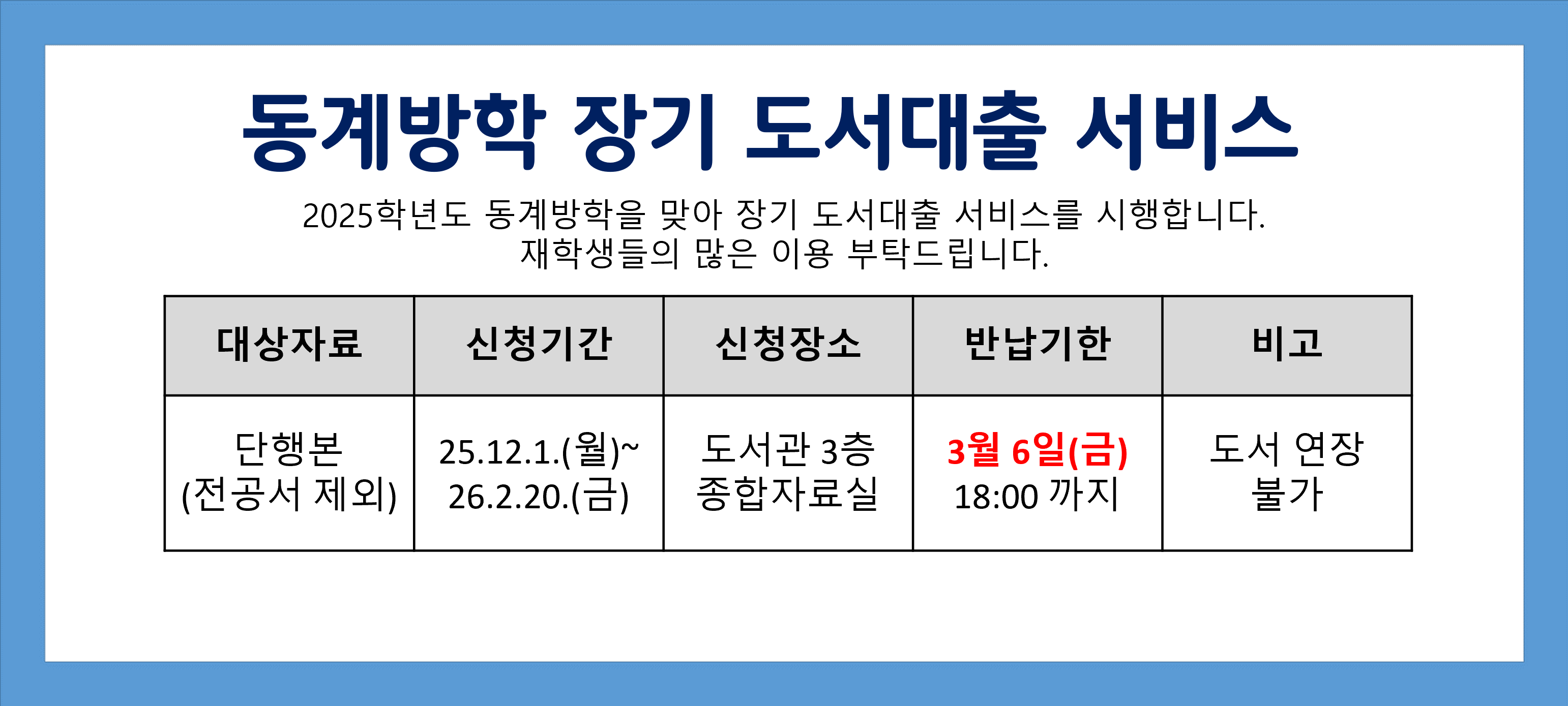 2025학년도 동계방학 장기 도서대출 서비스