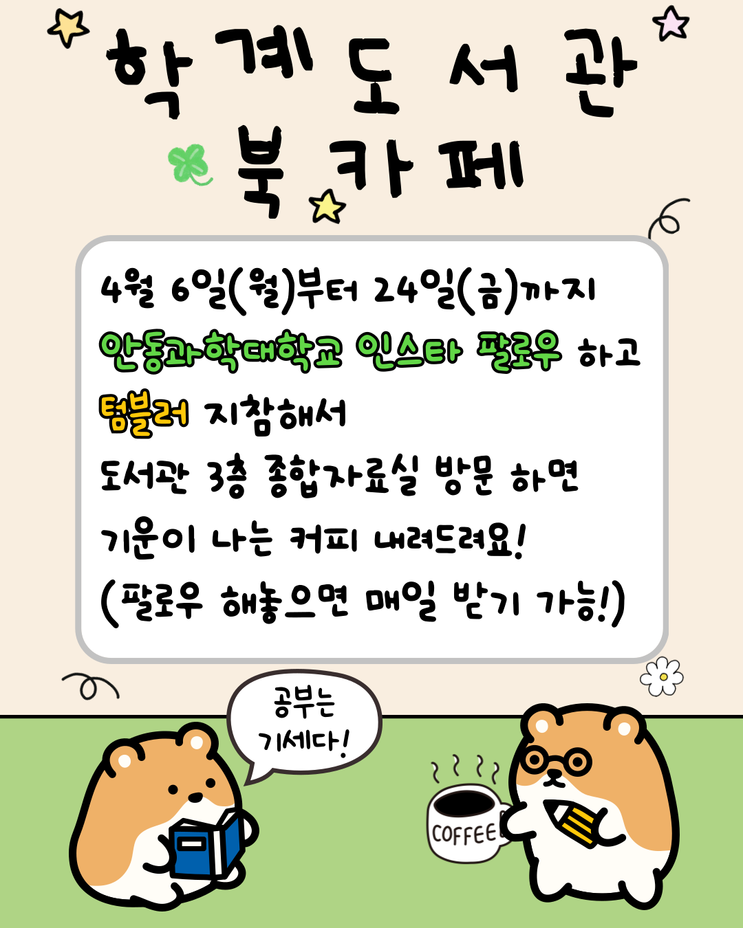 2026학년도 1학기 중간고사 학계도서관 북카페 행사 안내